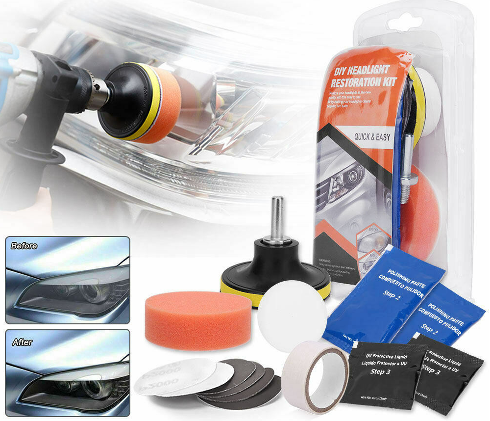 Pro Car Lens Headlight Restoration Kit Polishing Sanding Cleaner Repair Tool Set