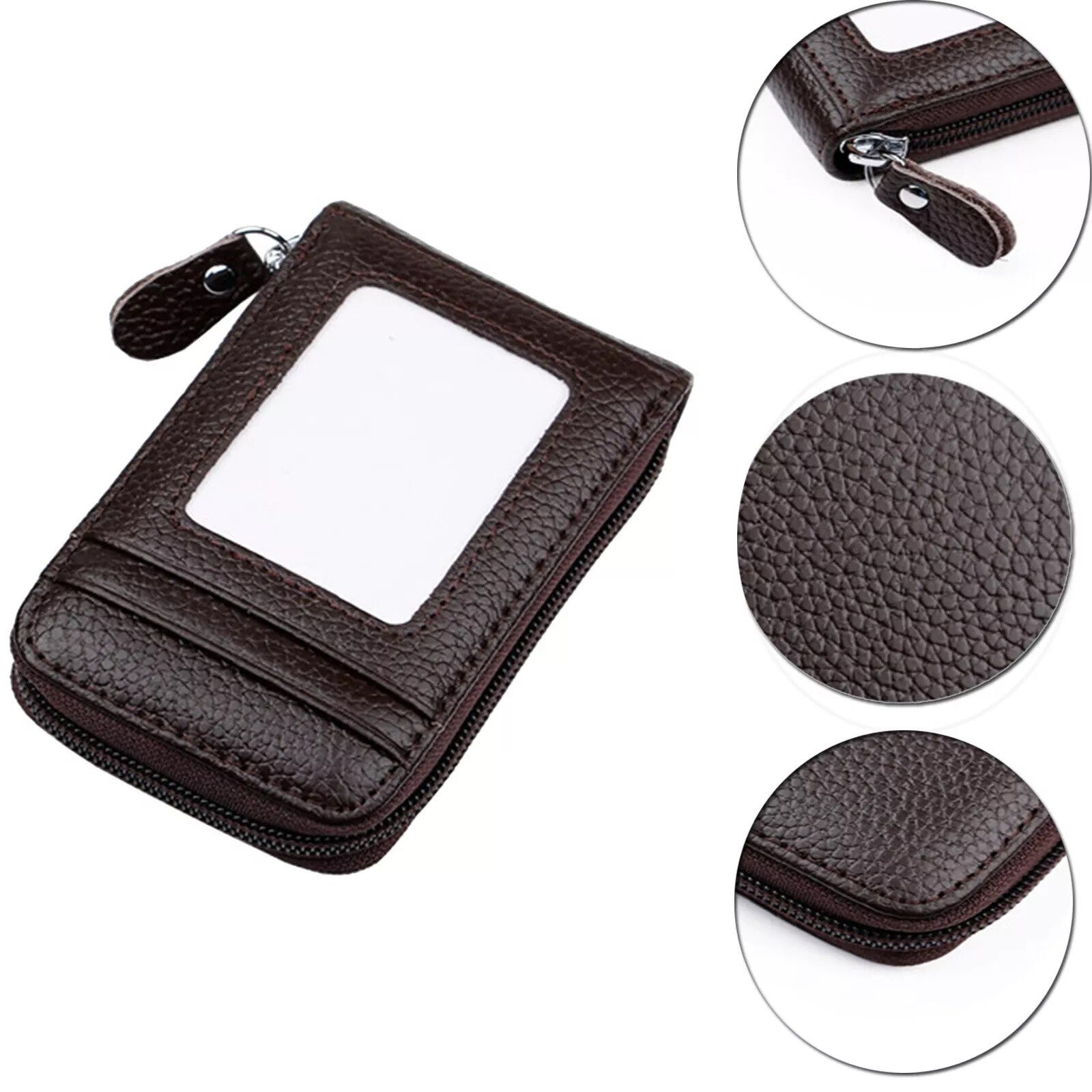 Large Capacity & Key Chain: Front - 1 clear ID window slot. Back - 1 zipper pocket. Main Compartment - 9 credit card slots and 2 cash slots. Especially designed an extra golden keychain with key ring can help you organize your home key or car key well.