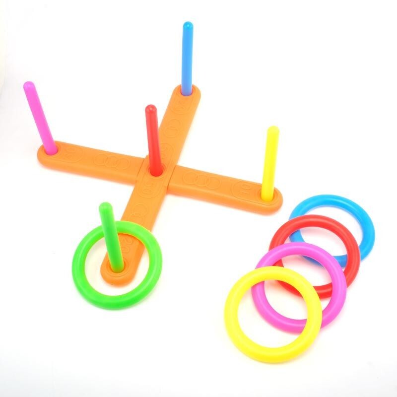 Ring Toss Game Collapsible 12pcs Throwing Skills Battle Game Multicolour 40x16cm