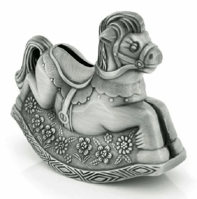 Rocking Horse Pewter Money Bank Box Baby Gift Christening Decor Room Nursery
