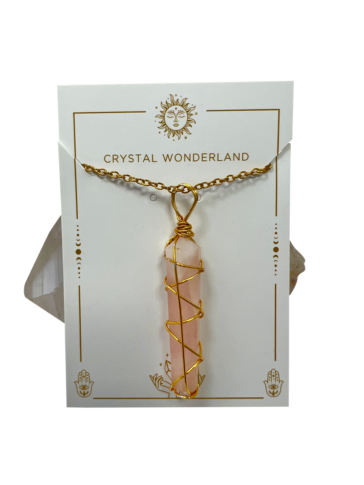 Rose Quartz Double Pointed Terminated Crystal Pendant Necklace Gold Healing