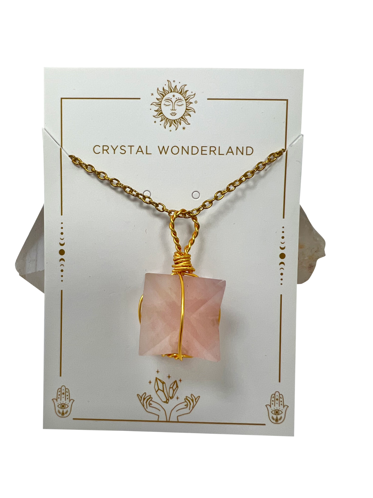 Rose Quartz Merkaba Crystal Pendant Necklace Gold Healing Crystal