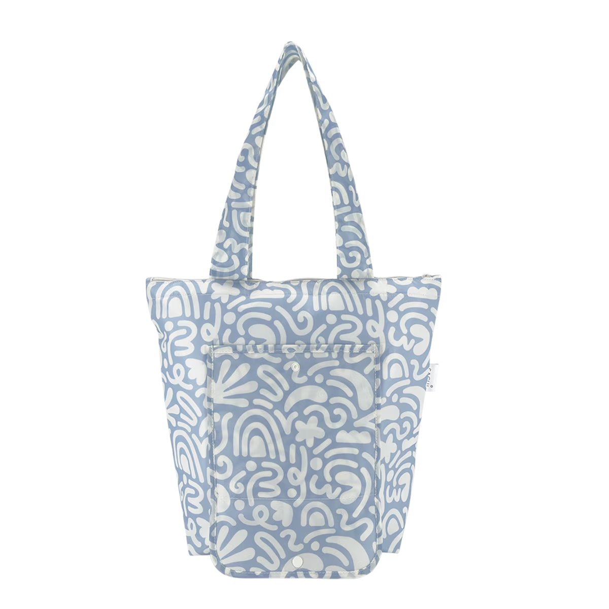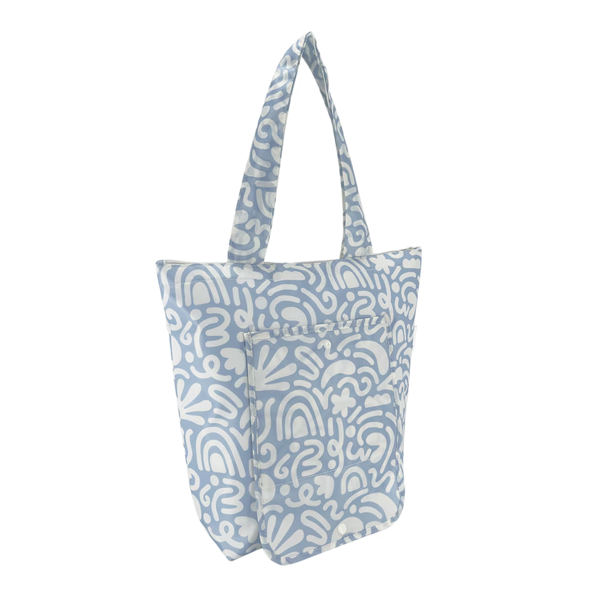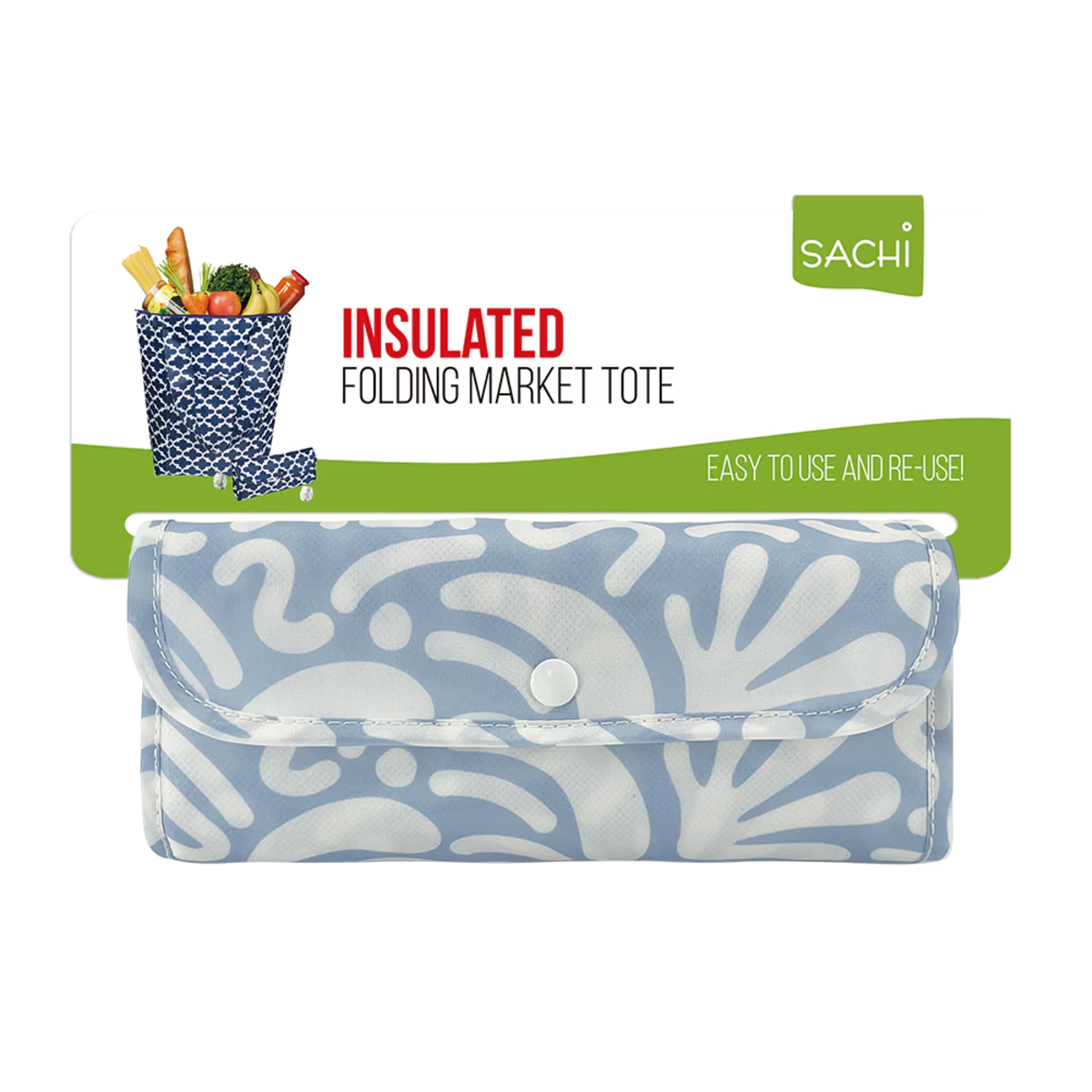 Package Includes: 1pc Sachi Insulated Folding Market Tote Blue Squiggles