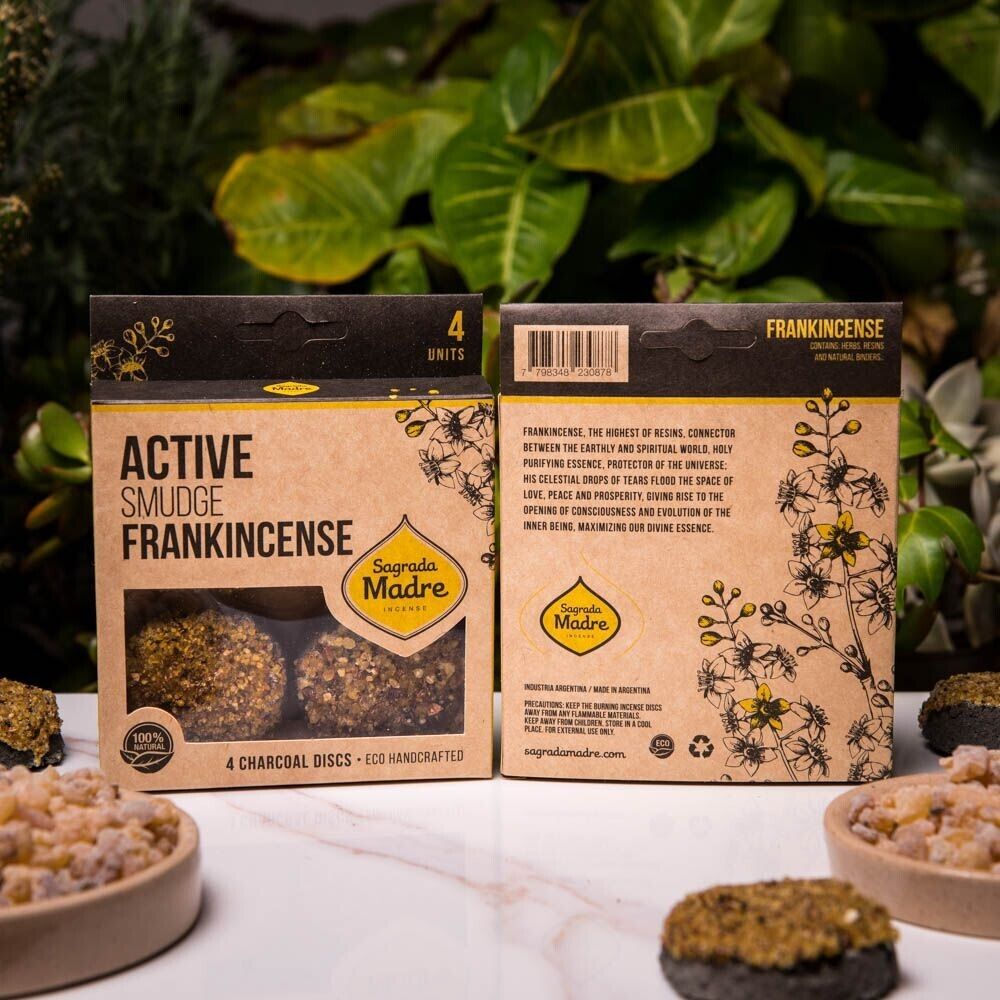 These Sagrada Madre Active Smudge Disks are hand-made with Frankincense resin, carbon, plant-based binders and, salt.