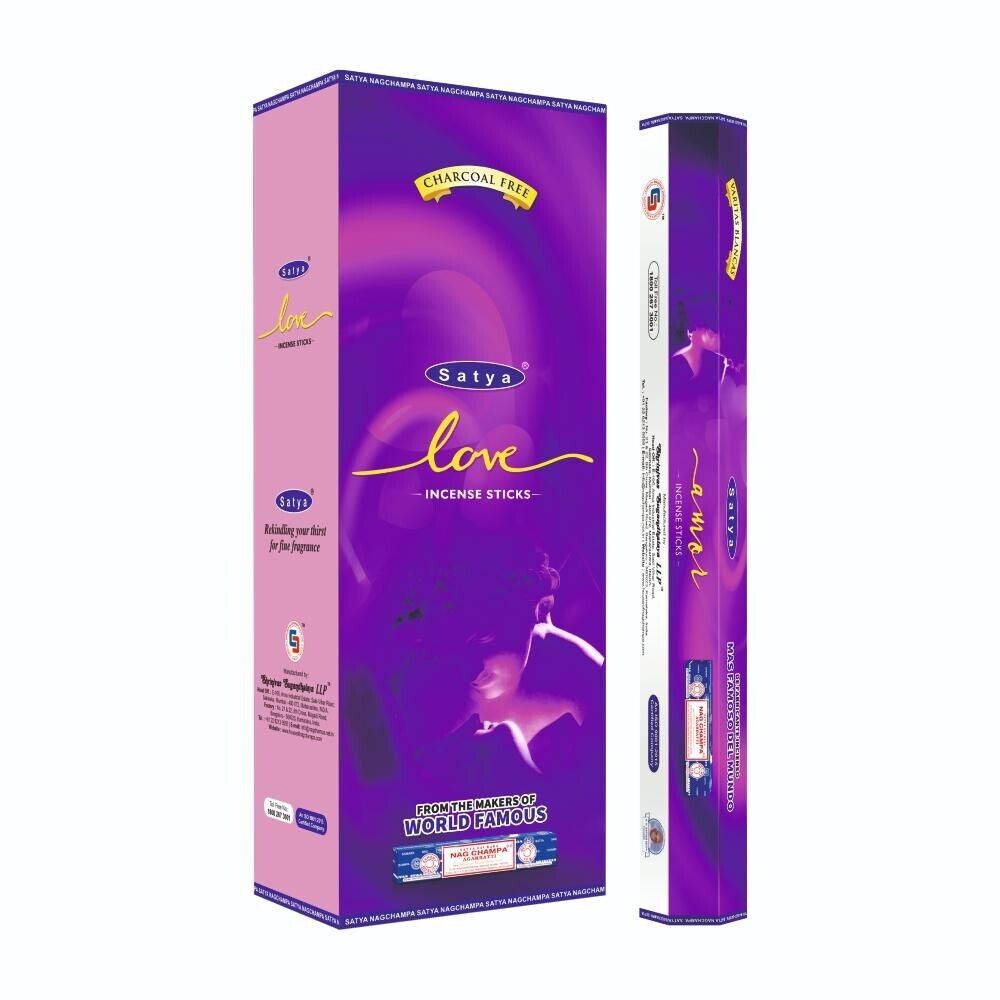 Package Includes: Box with 6 Packets of Incense Sticks Satya Hexa LOVE