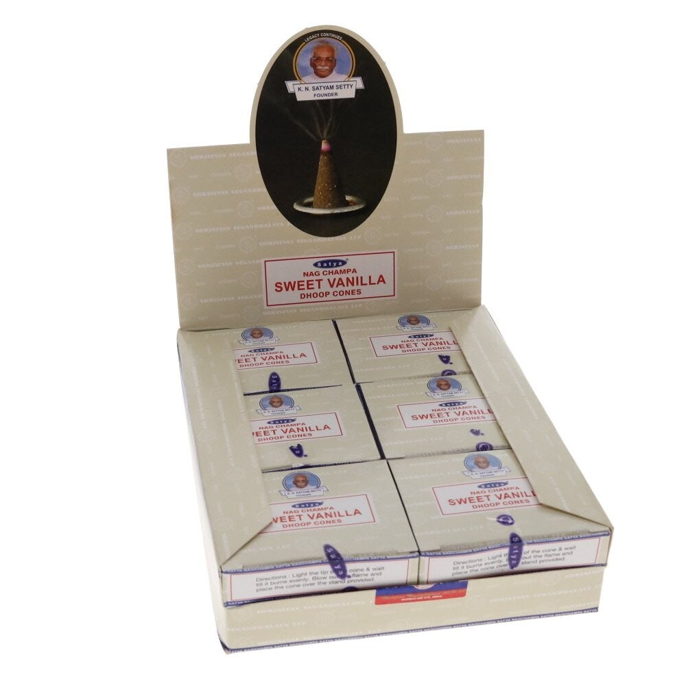 Package Includes: 12 packets Sweet Vanilla Incense Cones Satya