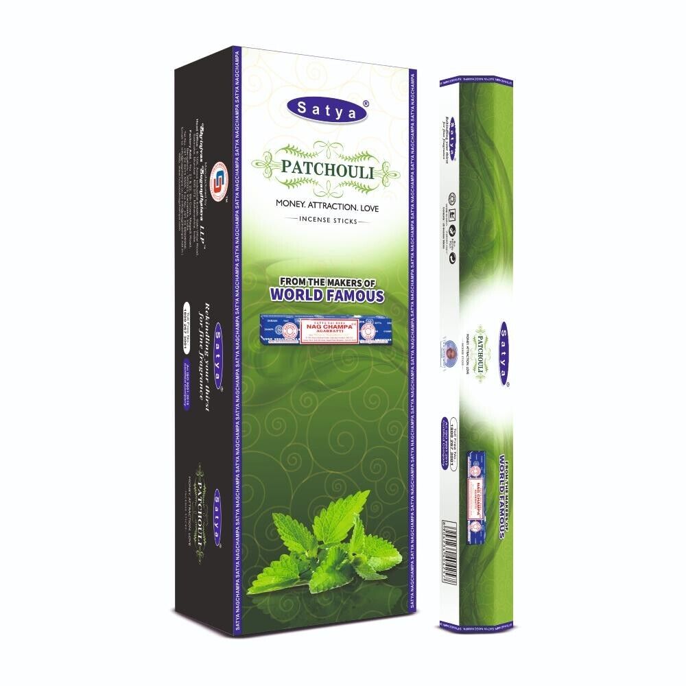 Package Includes: Box with 6 Packets of Incense Sticks Satya Patchouli