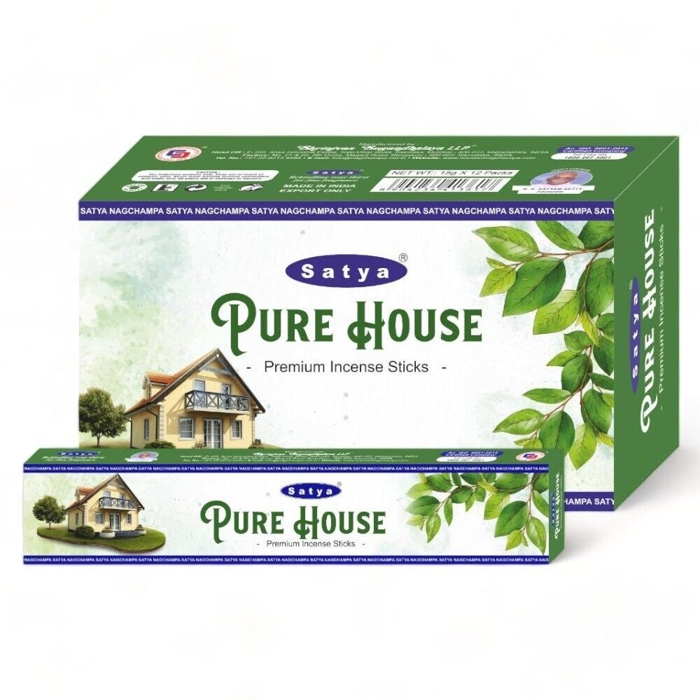 Package Includes: Box with 12 Packets of Incense Sticks 15g Satya Pure House