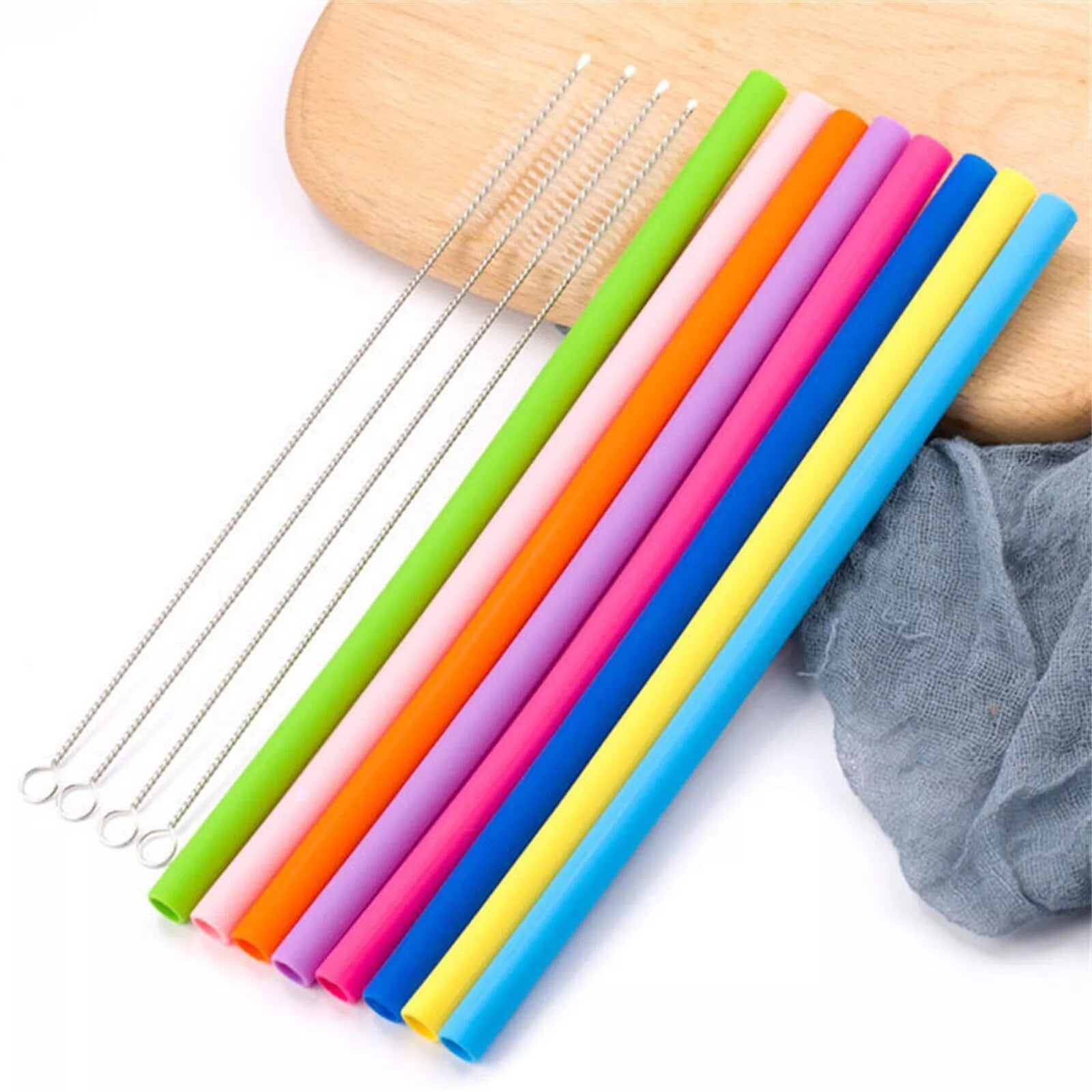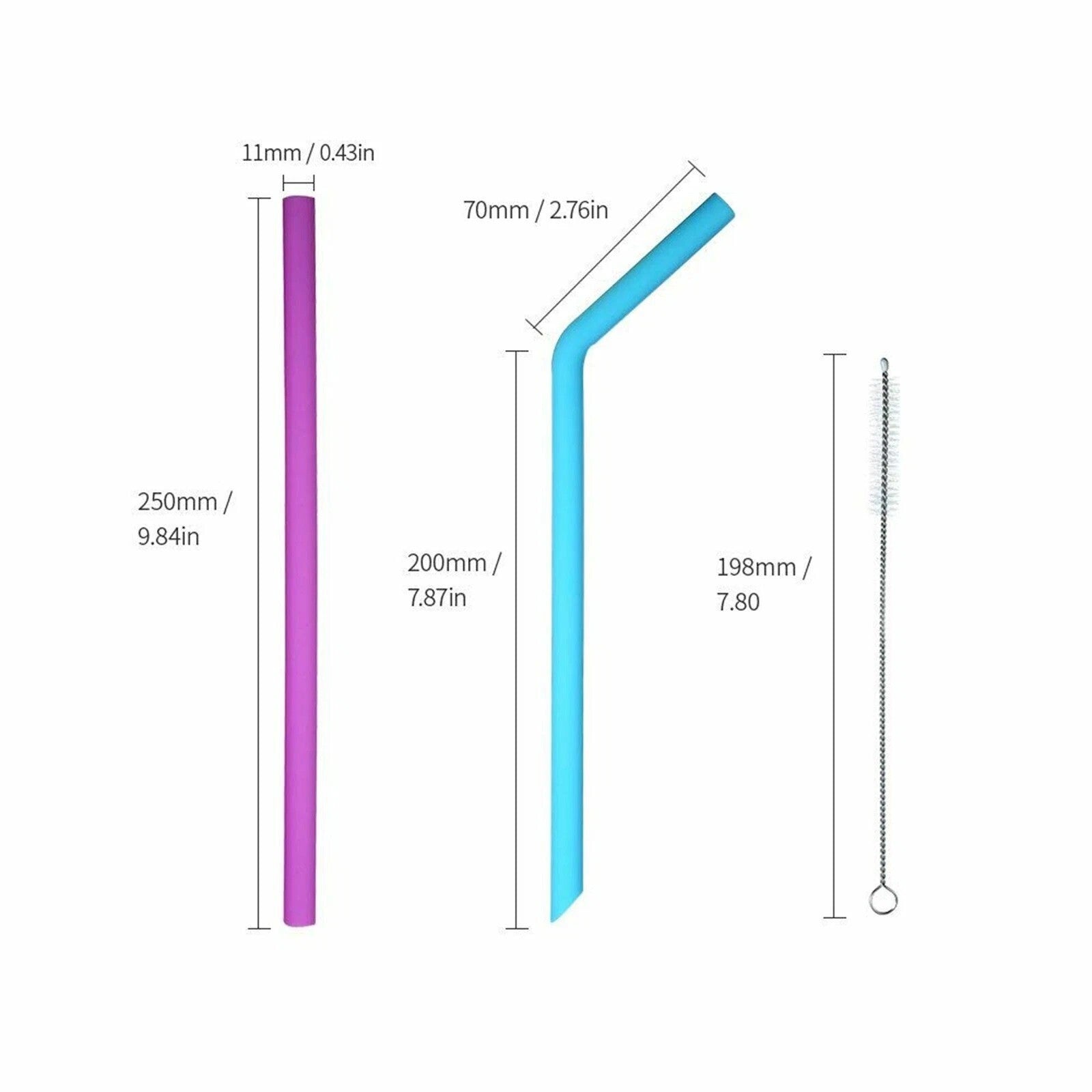 Set Jumbo Bended Silicone Straws Reusable Bent Drinking Straw w/ Cleaning Brush