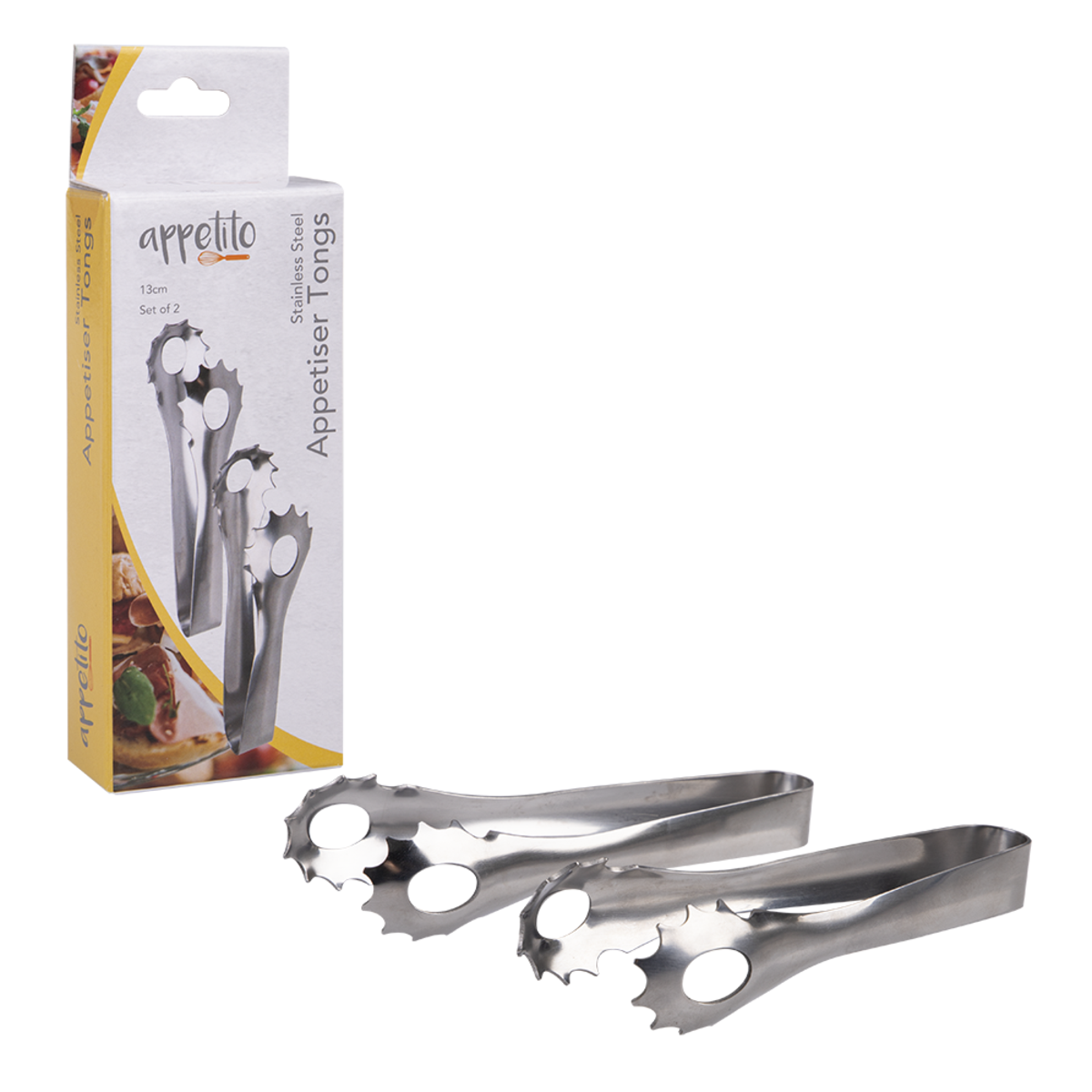 Package Includes: Set of 2 Appetito Appetiser Tongs