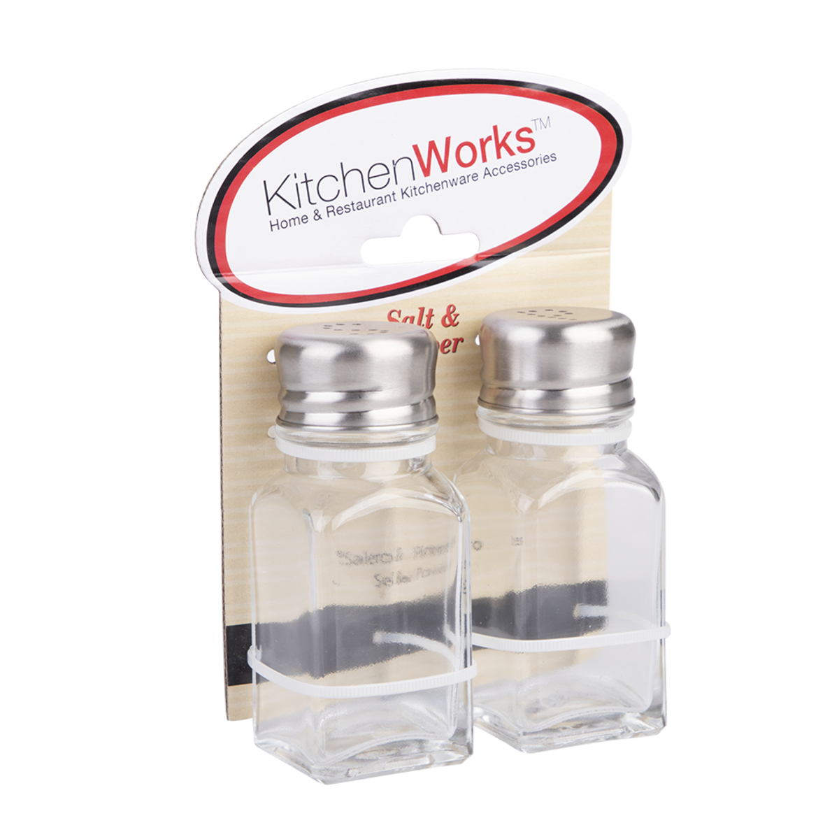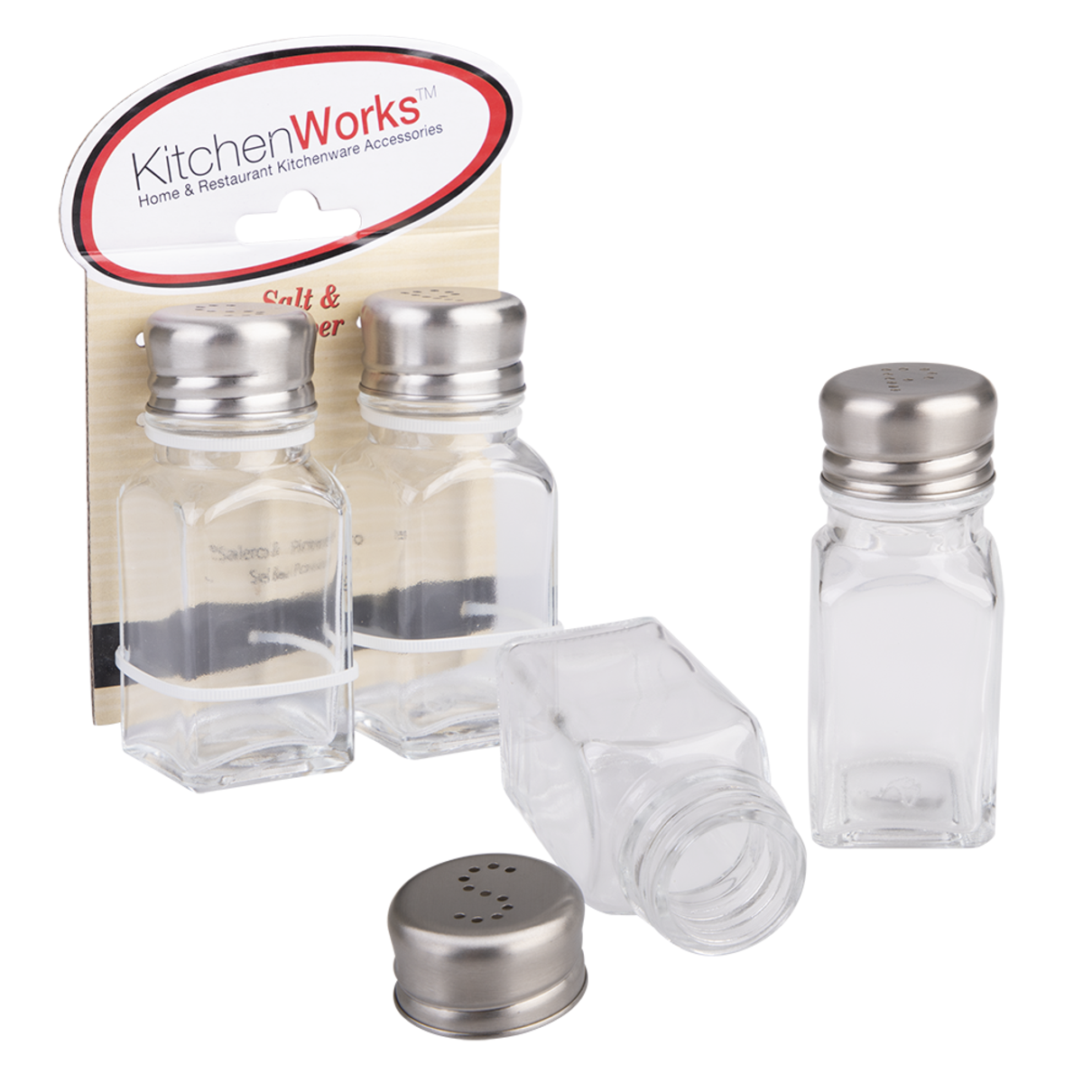 Set of 2 Kitchenworks Square Glass Cafe Salt & Pepper Shakers Set Gift Decor