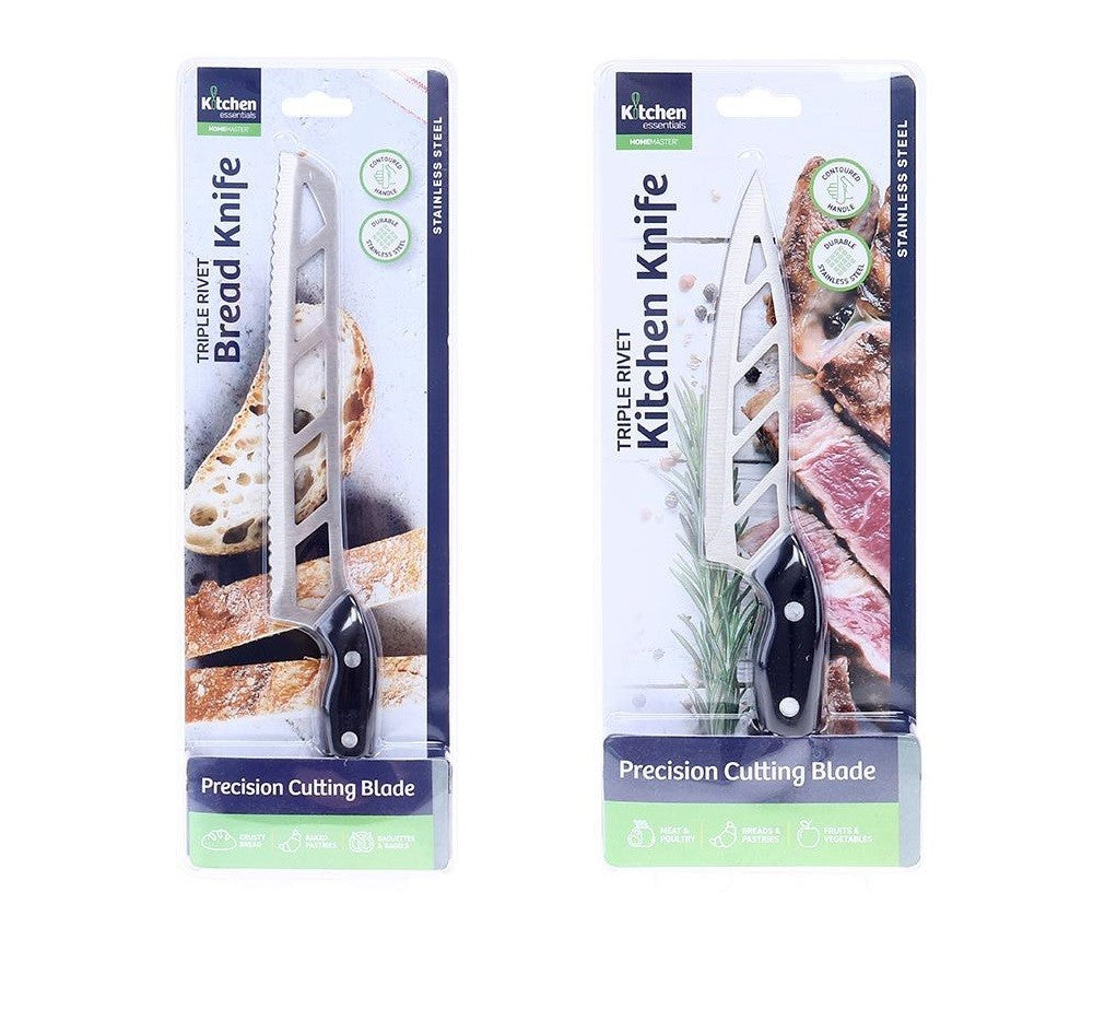Set of 2 Triple Rivet Kitchen Bread Knife & All Purpose Stainless Steel