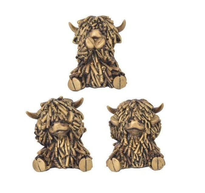 Highland Cool Cow Fun Shaggy Cow Small set of 3 Statue Adorable and charming decoration featuring a cute Highland Cow. Perfect for adding warmth and personality to your home.