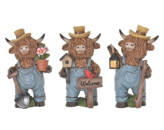 Set of 3 Highland Cow Outdoor Statues Garden Yard Ornaments Gift