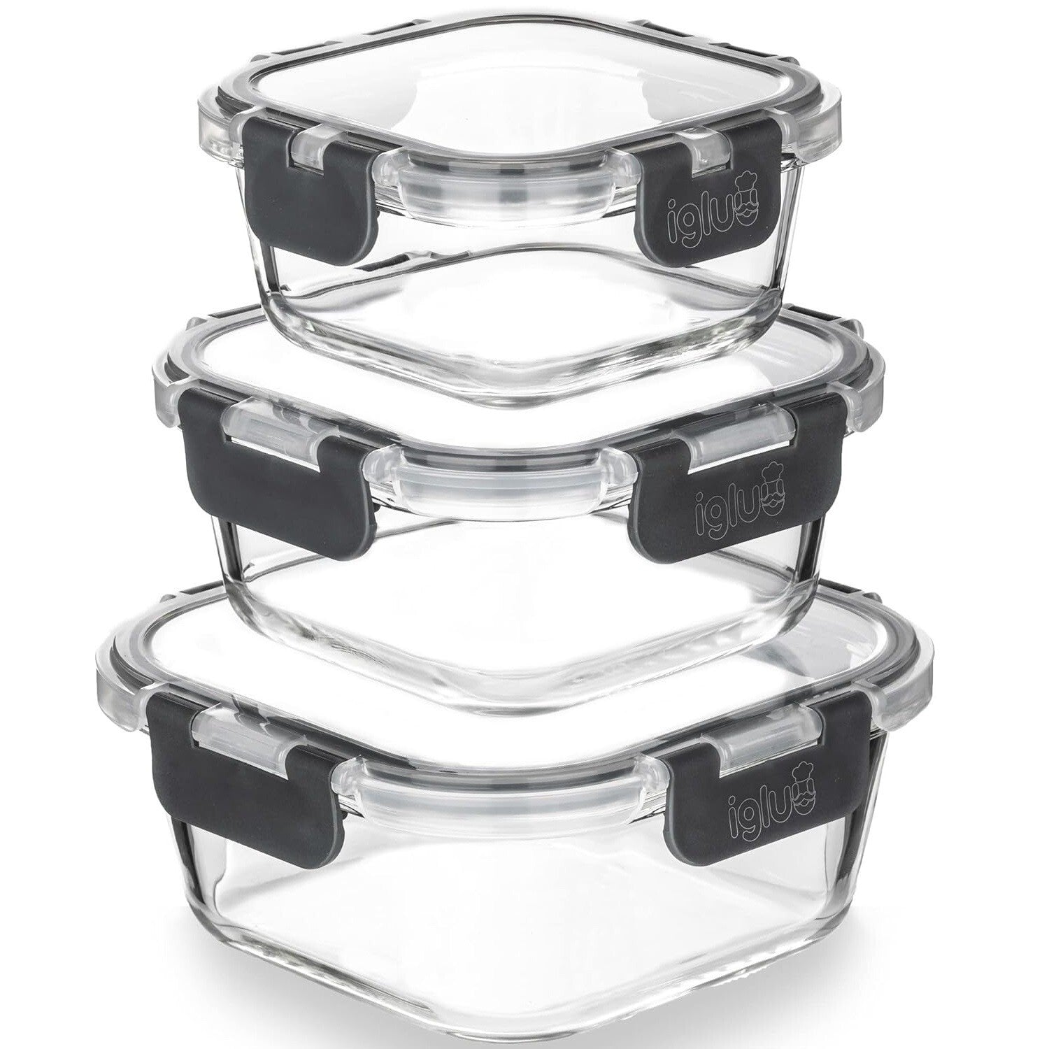 Package Includes: Set of 3 Square Glass Airtight Snap Lock Lids Different Sizes