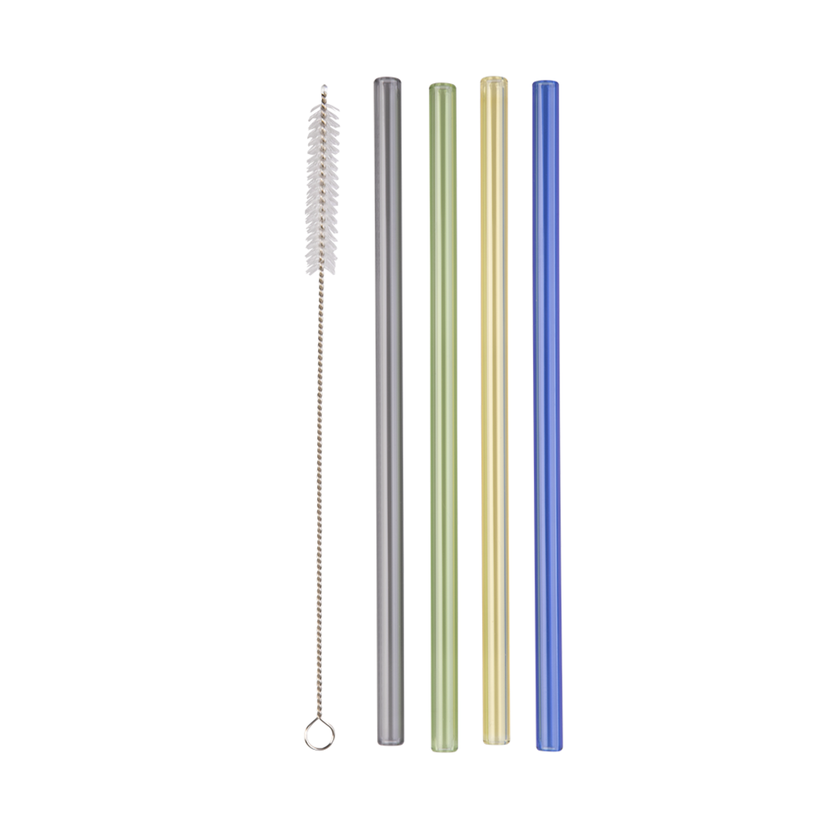 Set of 4 Appetito Glass Straw Straight with Brush Assorted Colour