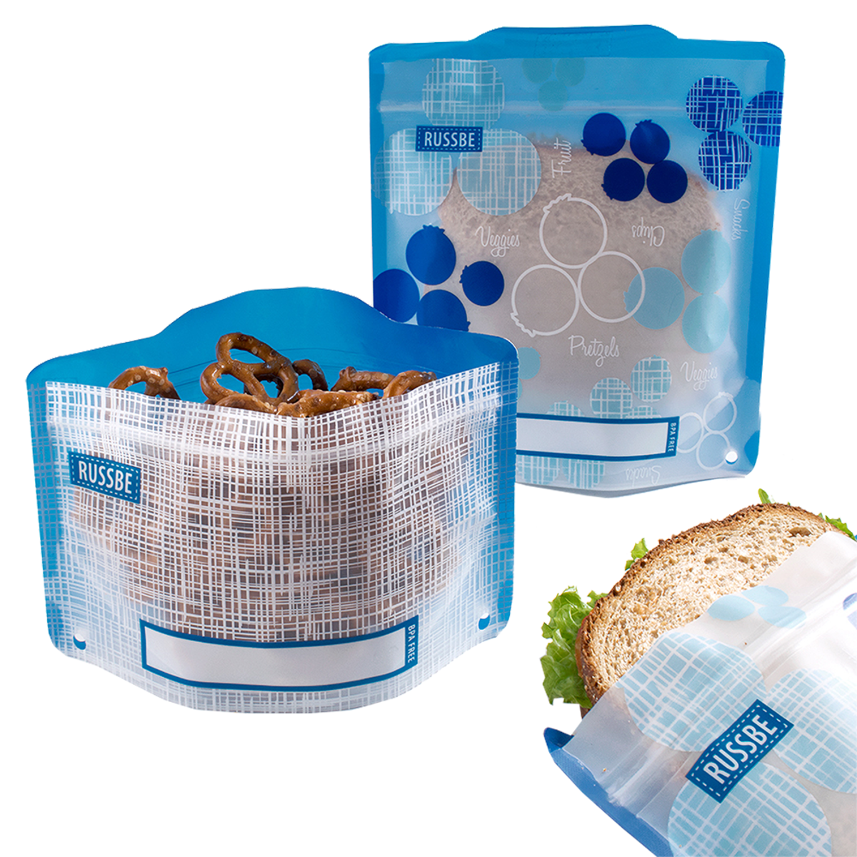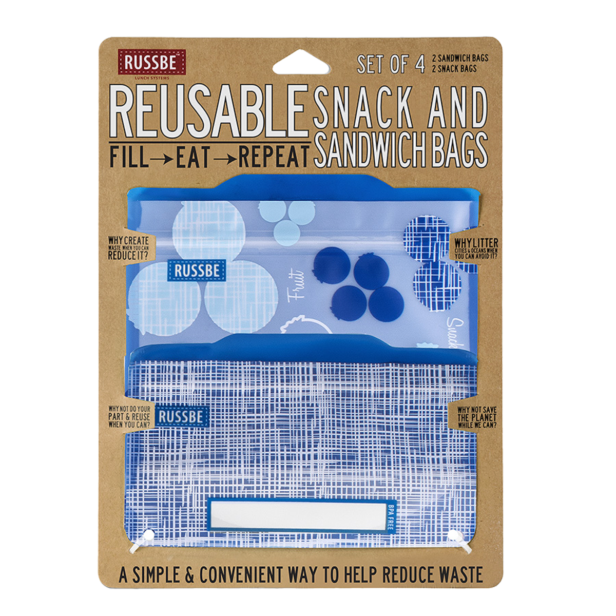 Durable and reusable, this set of 4 Snack and Sandwich Bags from Russbe are an eco-friendly and trendy way to keep food fresh. Featuring reinforced seams and a locking seal to keep food fresh, the gusseted standup design ensures a mess-free snack/meal experience. BPA, PVC, latex, and phthalates-free, you can be sure you're making a healthy choice for you and your on-the-go family - ideal for storing leftovers, marinating foods, or when packing lunch for work or school.