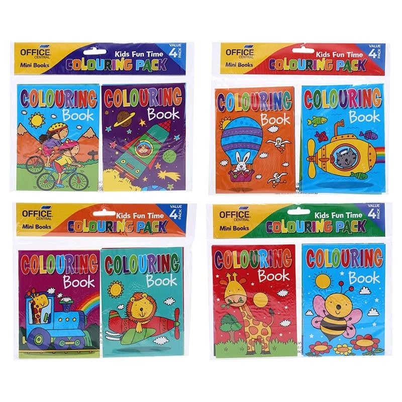 Package Includes: 4× Mini Kids Colouring Books (assorted designs)