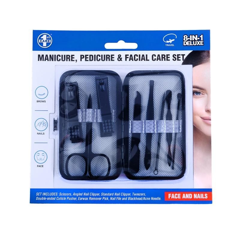 1st Care Deluxe manicure, Pedicure & Facial Care Set consists of 8pcs that are made from high-quality carbon and stainless steel.