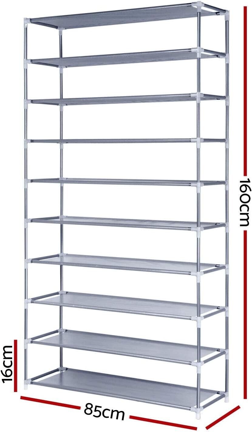 Shoe Rack 10 Tier Shelves Shoes Cabinet Storage Organiser DIY - Silver