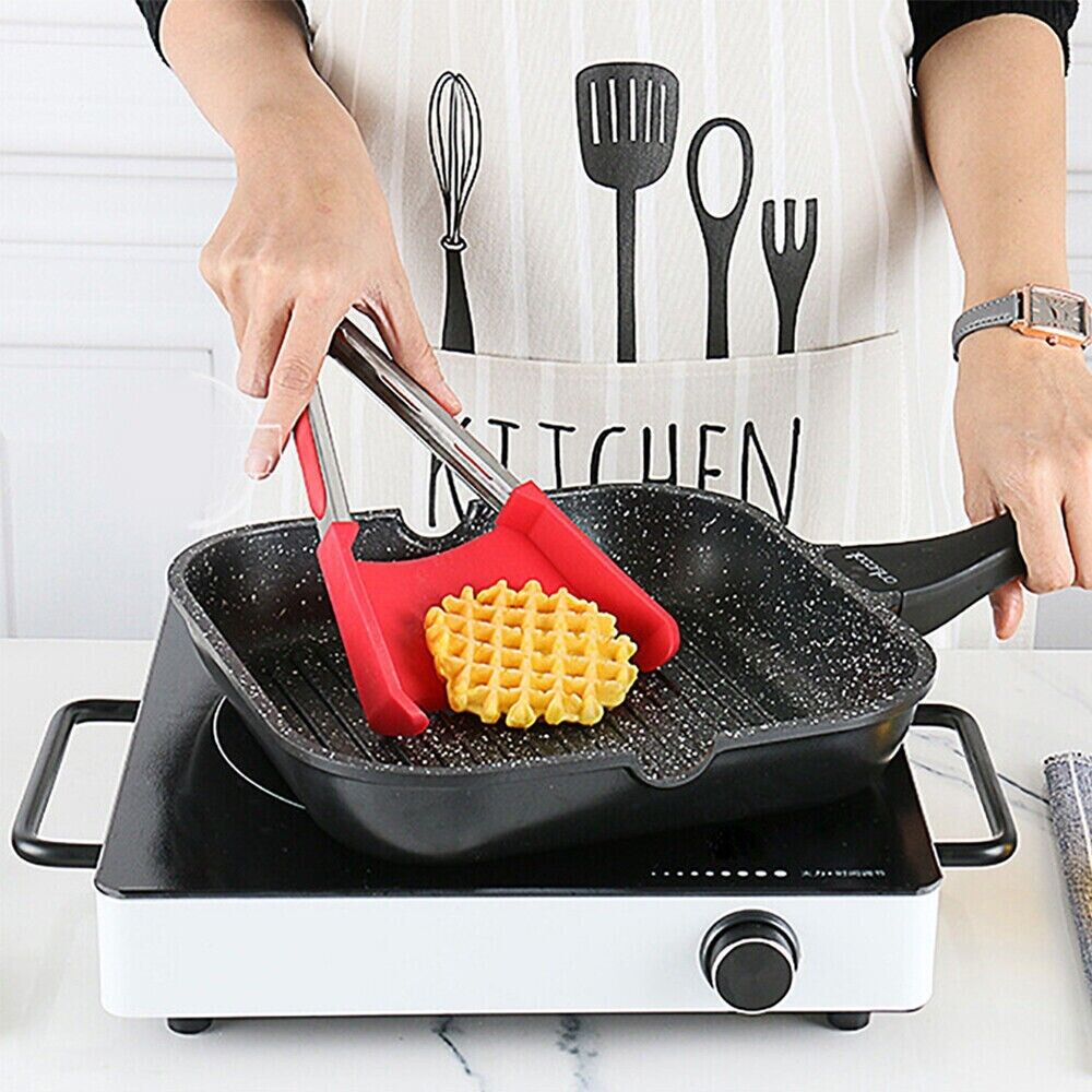 Silicone Cooking Tongs Heat Spatula Stainless Steel Resistant Frame Gadget BBQ