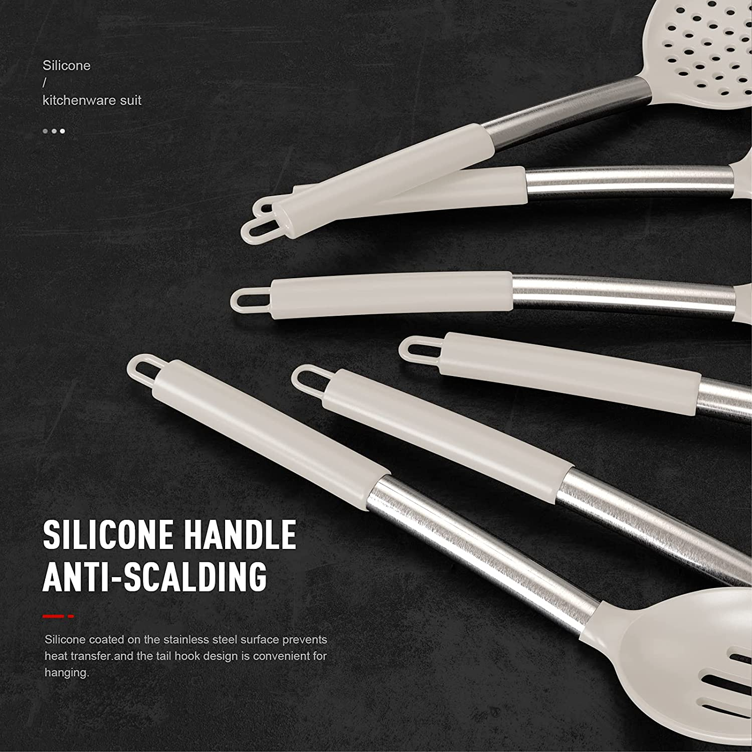 Package Includes 1x Set of Silicone Cooking Utensils -Khaki