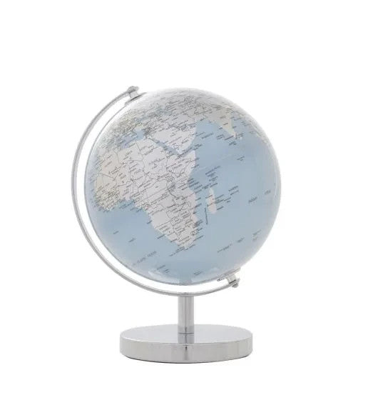 Package Includes: 1x Silver Blue World Globe - 14.2cm
