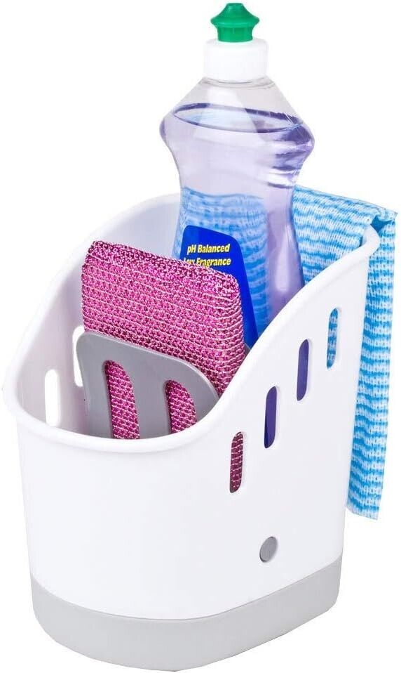 Sink Tidy DLine White Caddy Tidy Dish Cleaning Basket Holder Sponge Rack Kitchen