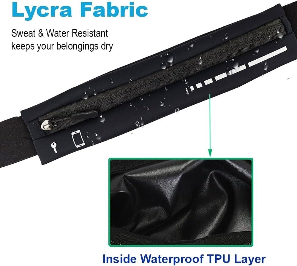 Close Fitting Wasit Pack - Put it around your waist, cover with shirt or jacket. Comfortable Fit Belt: Made of Soft, skin-friendly fabric, running waist pack that is so comfortable you’ll forget it’s there. Sweat Proof & Breathable: running waistband using waterproof fabric to keep your belongings safe and dry all the time.