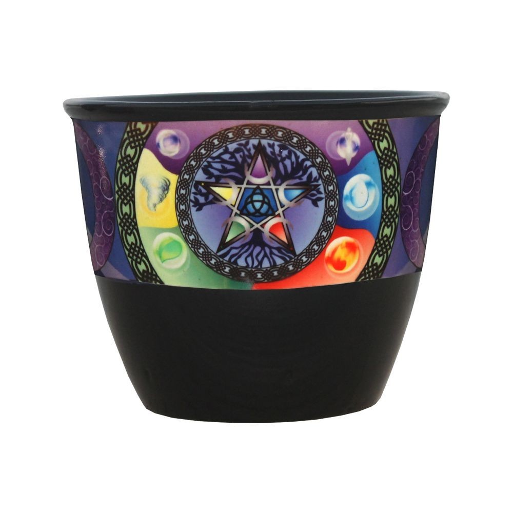 Smudge Bowl Pentacle Print Ceramic Incense Burner Cleanse Herbs 7.7x9cm