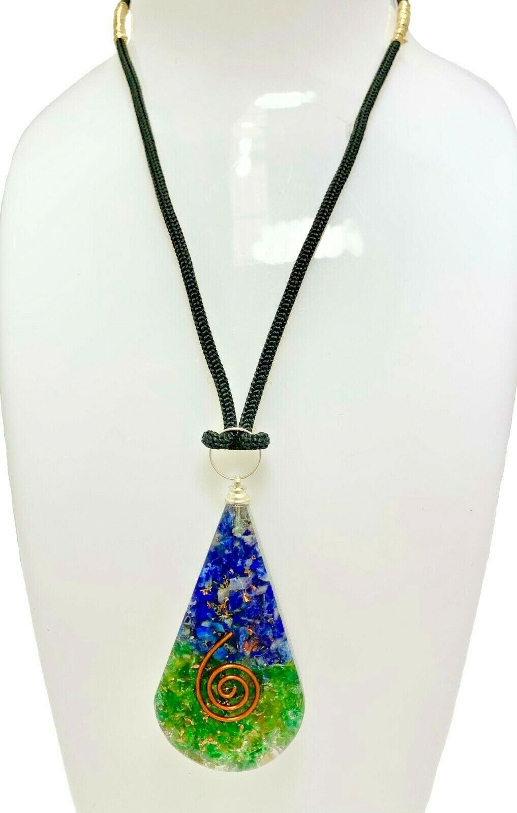 Sodalite Green Aventurine Teardrop Copper Coil Orgonite Pendant Healing Necklace