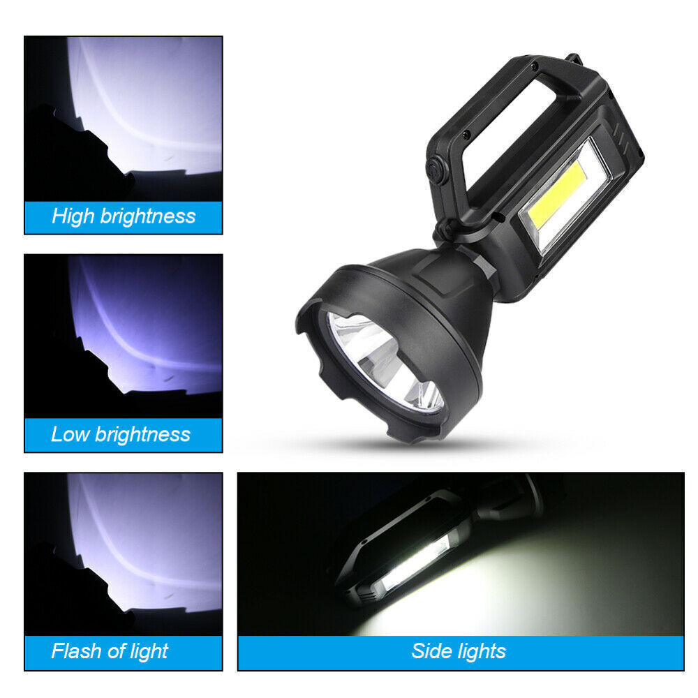 - 【DURABLE & WIDELY USED】The led spotlight is made of high-grade ABS engineering materials, Durable and powerful, It is perfect to used as hunting spotlight, camping flashlight, car flashlight, work flashlights, fishing light, rechargeable emergency light, LED searchlight, outdoor led spotlight flashlights and other lighting applications, It has a battery indicator design, easy to check whether it needs to be charged