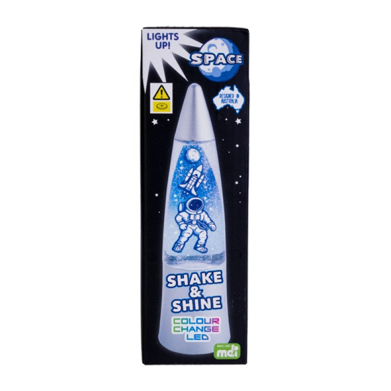 Blast off into outer space with this Shake & Shine Space Glitter Lamp.