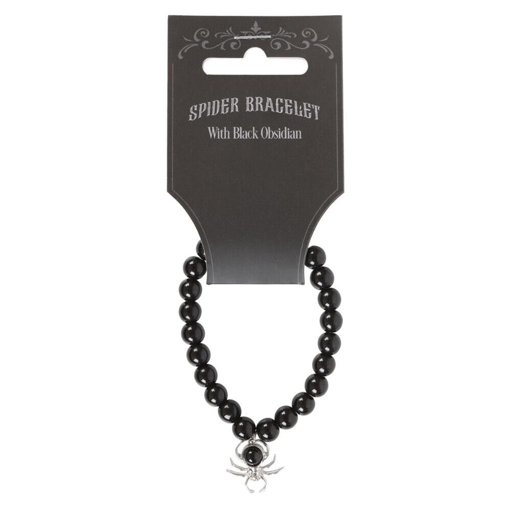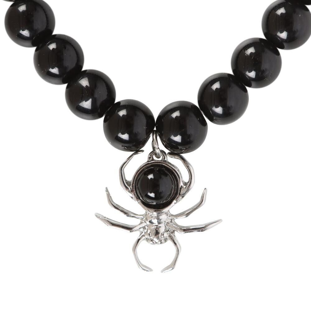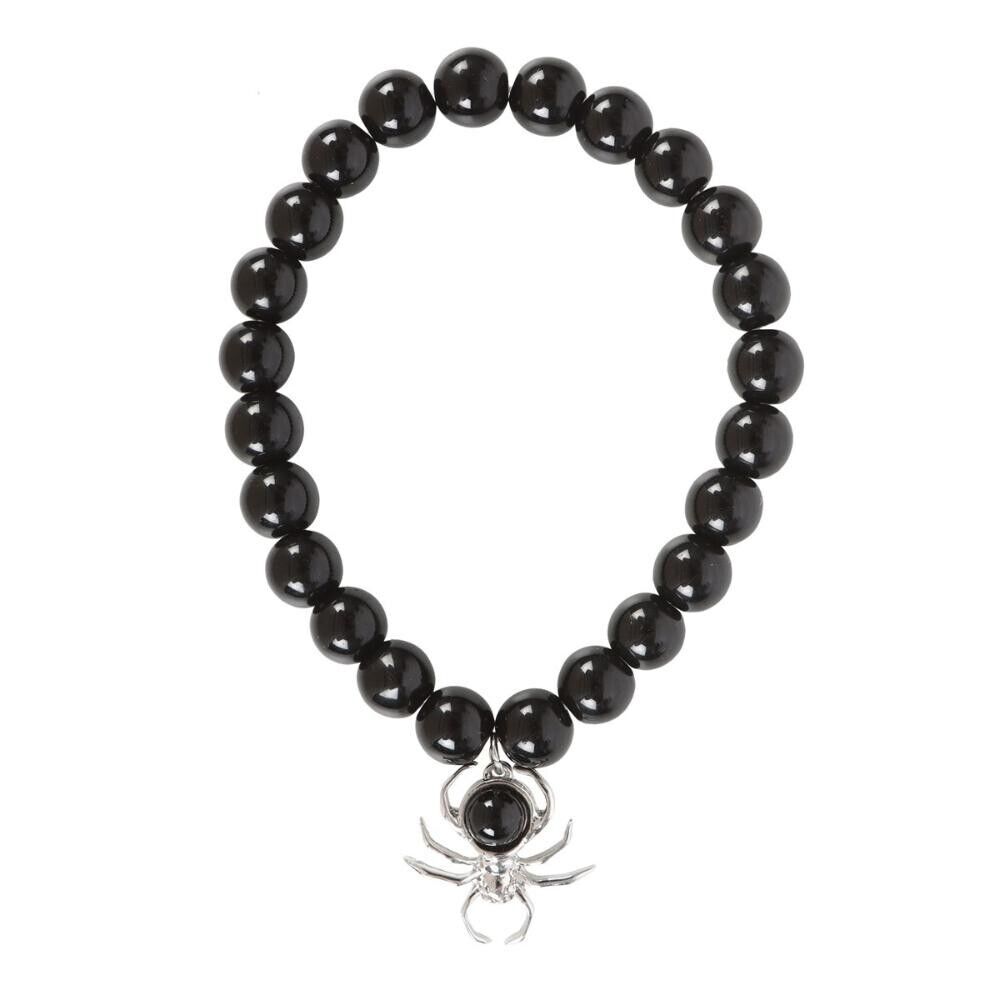 Add a little spooky to your style with this spider bracelet crafted from stainless steel with black obsidian beads.