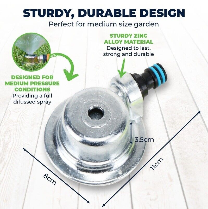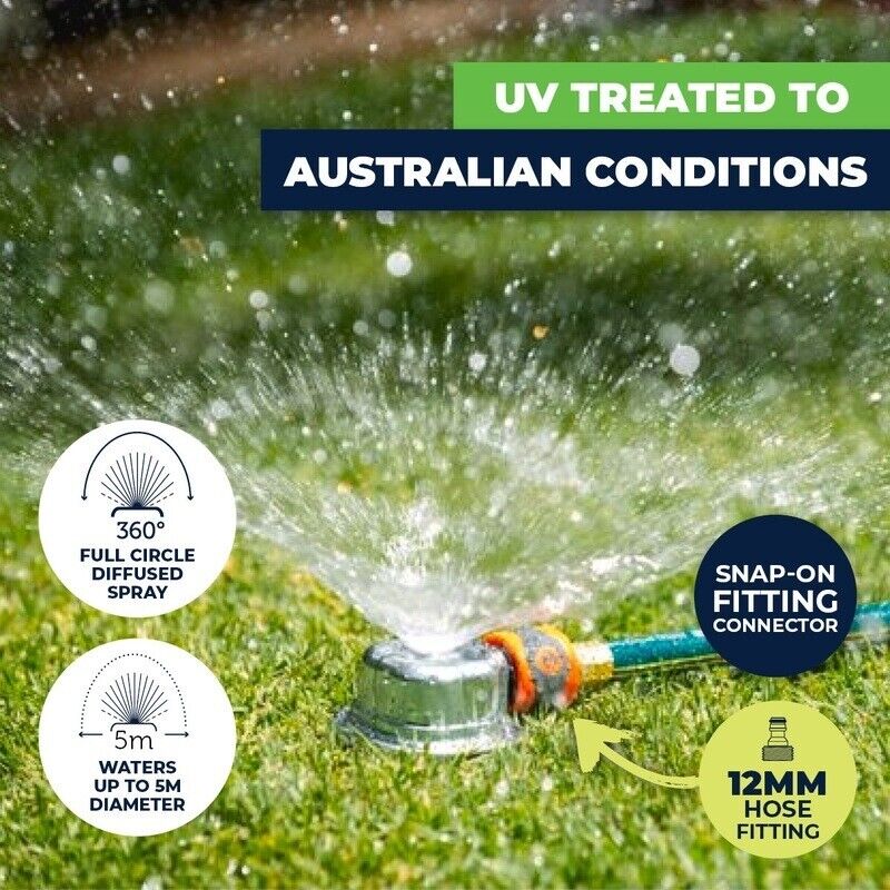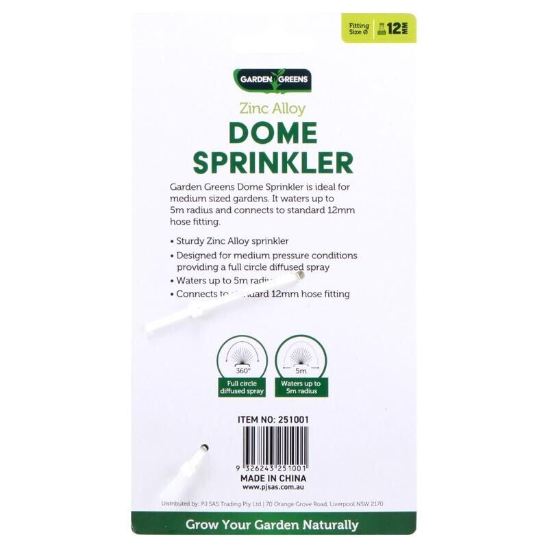 Garden Greens® Ideal for watering your lawn and garden beds these dome sprinklers are designed to fit a standard garden hose. Watering up to 5 metres in diametre, bring your lawn and garden to life using these sprinklers.