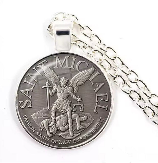 Package Includes: 1 Piece St. Michael Pendant Necklace Grey Silver