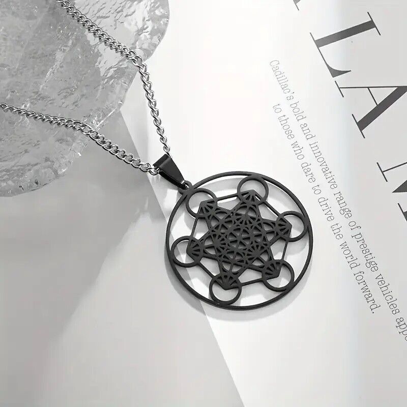 Package Includes 1x Stainless Steel Flower Of Life Chakra Sacred Metatron Necklace Pendant - Black