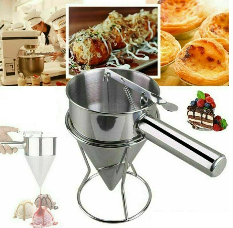 Stainless Steel Funnel Batter Dispenser Pancake Cupcake Waffle Tool With Stand