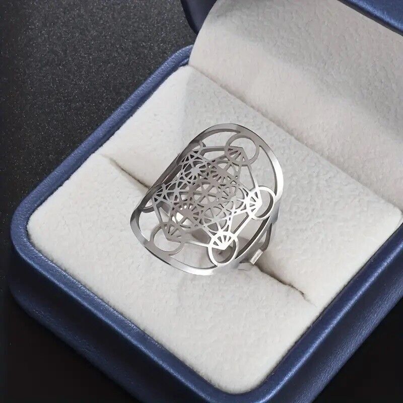Package Includes 1x Stainless Steel Metatron Ring Adjustable - Silvery