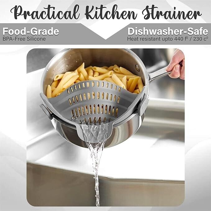 Strainer and Pasta Adjustable Silicone Clip on for Pots Pans Bowls Kitchen