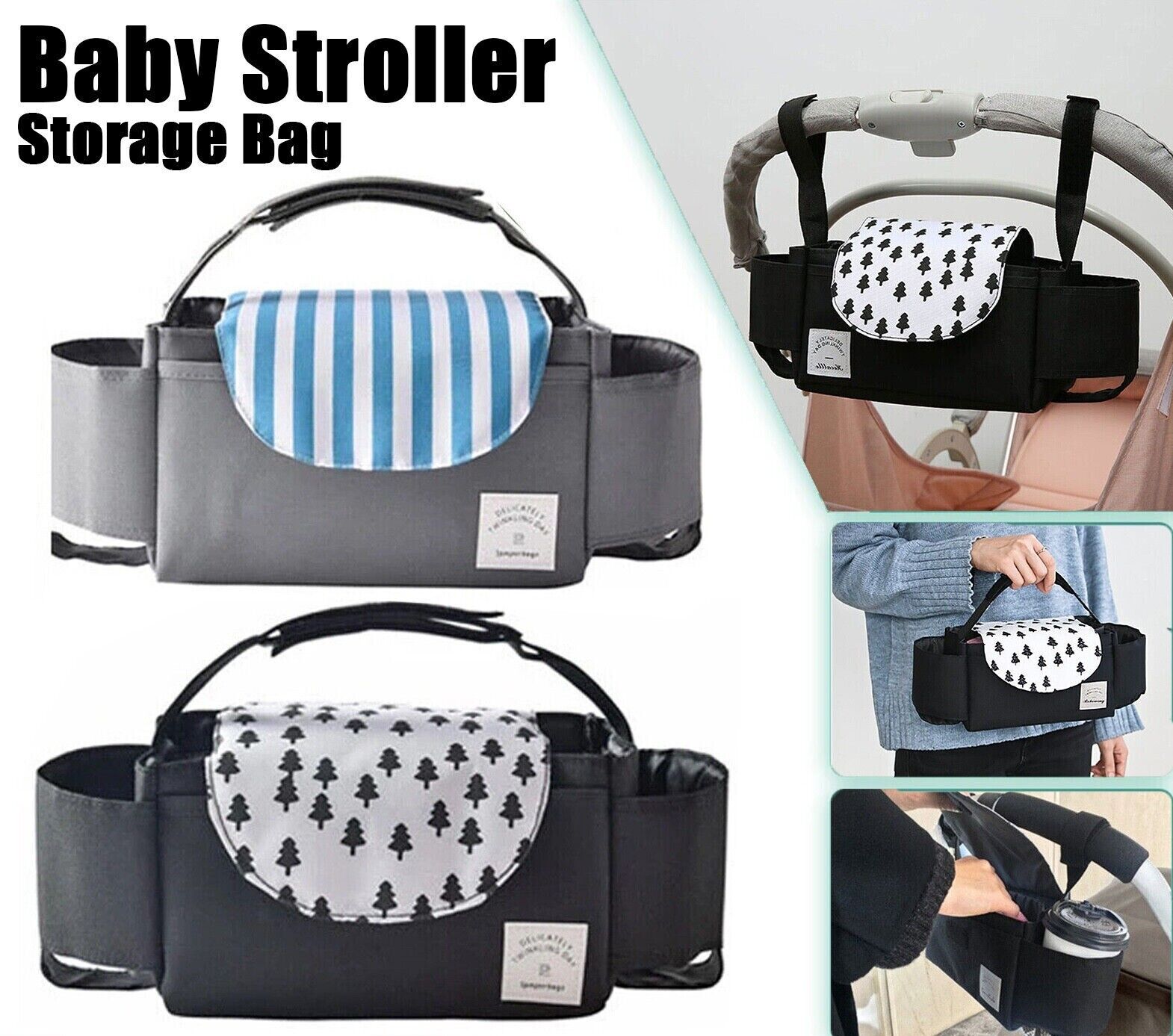 Stroller Baby Organiser Buggy Mummy Bag Pram Pushchair Cup Storage Blue Stripes