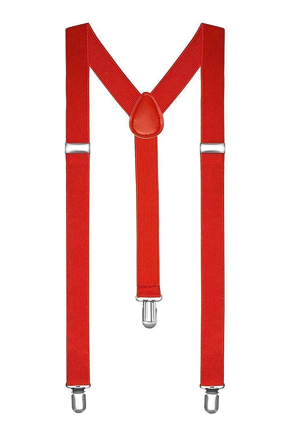 Suspenders One Size Fully Adjustable Y Shaped Elastic Braces Strong Clips Red