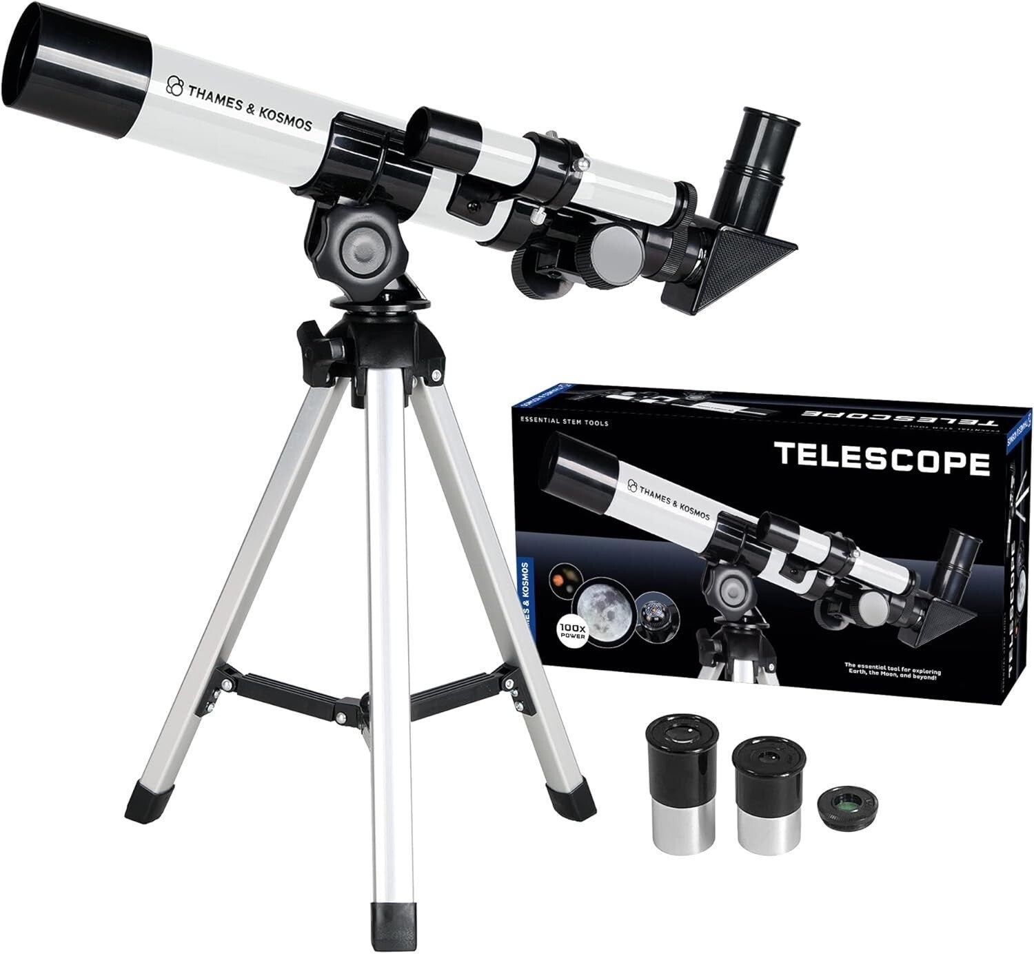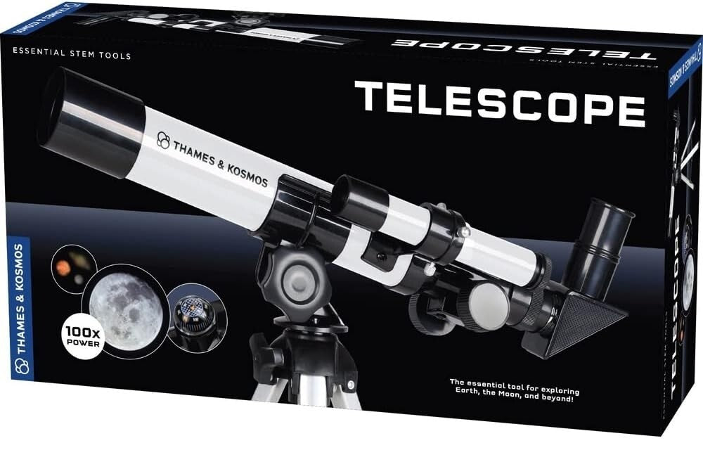 Thames & Kosmos The Telescope Essential STEM Tool | Entry-Level Refractor Telescope with 100x Magnification & Built-in Compass | Classic Scientific Device for Astronomical & Terrestrial Observations