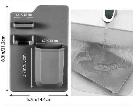 - A toothbrush holder that combines a razor holder, jewelry dish, and compact shower caddy all-in-one. Great for in the shower or above the bathroom sink.