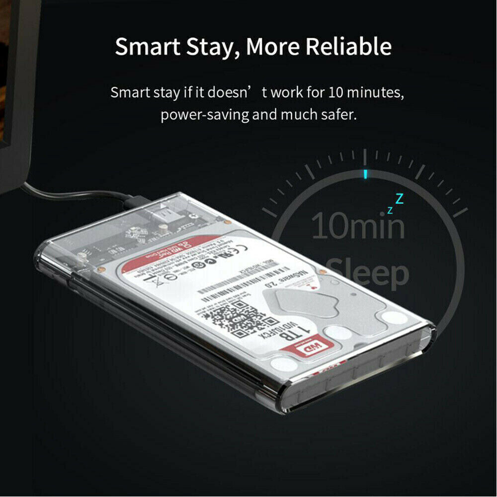 Transparent 2.5 inch USB 3.0 External Hard Drive HDD Enclosure Case SATA