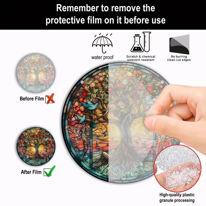1pc Tree Of Life Suncatcher, Stained Plastic Window Hanging, Outdoor, Living Room, Home Decor, Garden Decor