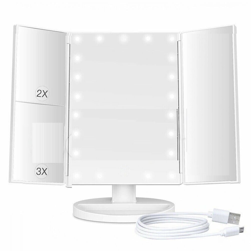 Tri-fold LED Makeup Mirror Magnifying Touch Cosmetic Desktop With Light Stand