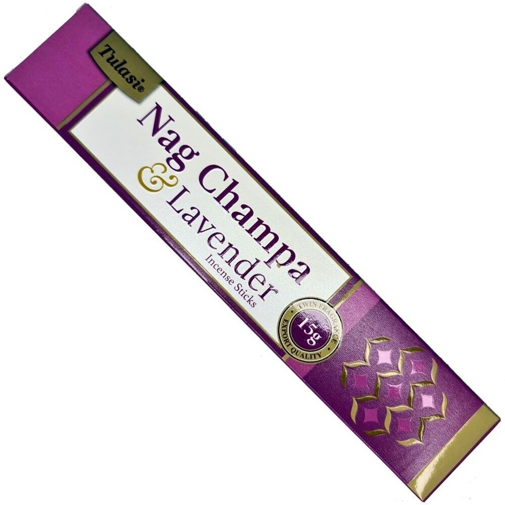 Package Includes: Tulasi Incense Nag Champa & Lavender Box with 12 Packets of Incense Sticks 15g