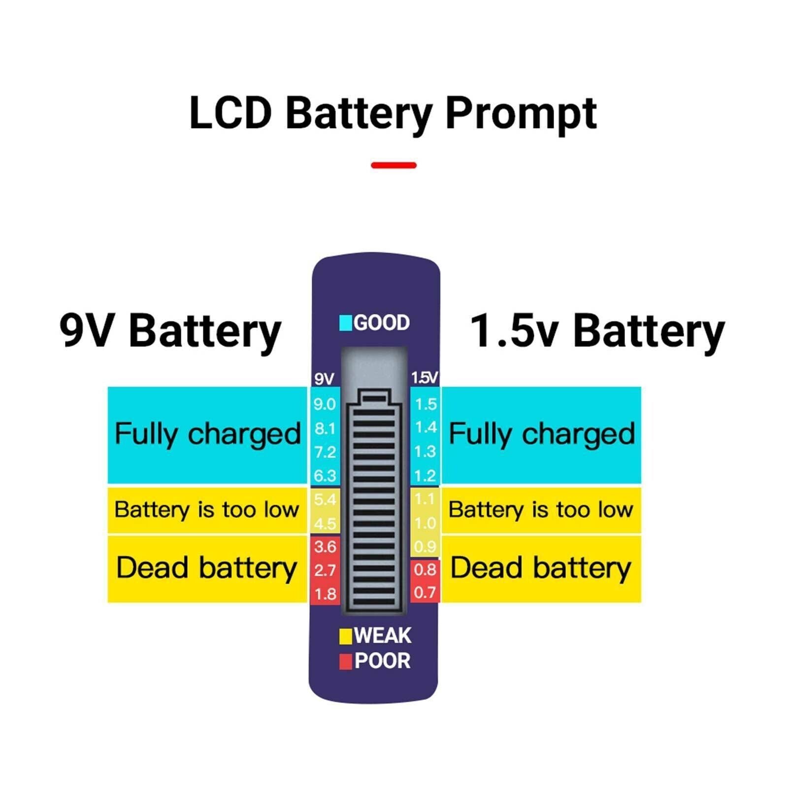 - Testing Range: C, AA, AAA, D, N, 9V and 1.55V battery.