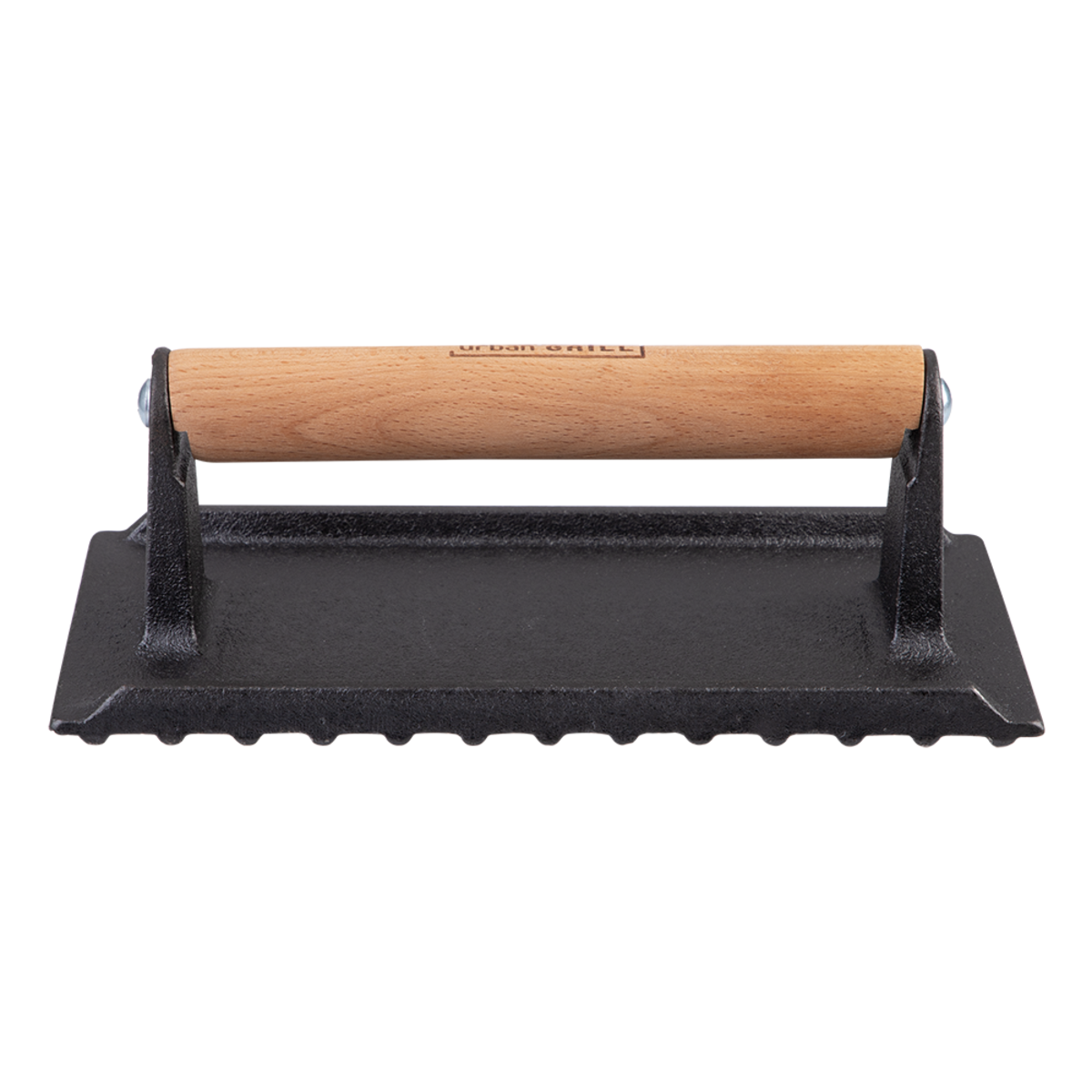 Harness bold, rich flavour and perfect sear marks with the Urban Grill Cast Iron Rectangle Grill Press.